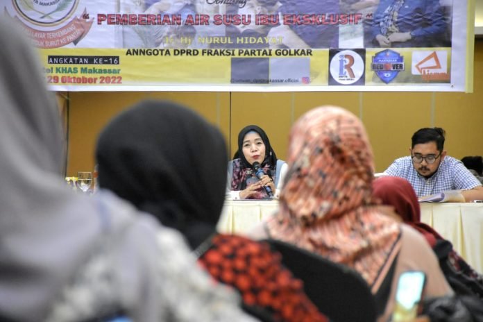 MAKASSAR, SULSELEKSPRES.COM – Anggota DPRD kota Makassar, Nurul Hidayat menggelar sosialisasi peraturan daerah (Perda) nomor 3 tahun 2016 tentang pemberian air susu ibu (ASI) eksklusif, berlangsung di Hotel KHAS Makassar Sabtu (29/10/2022).