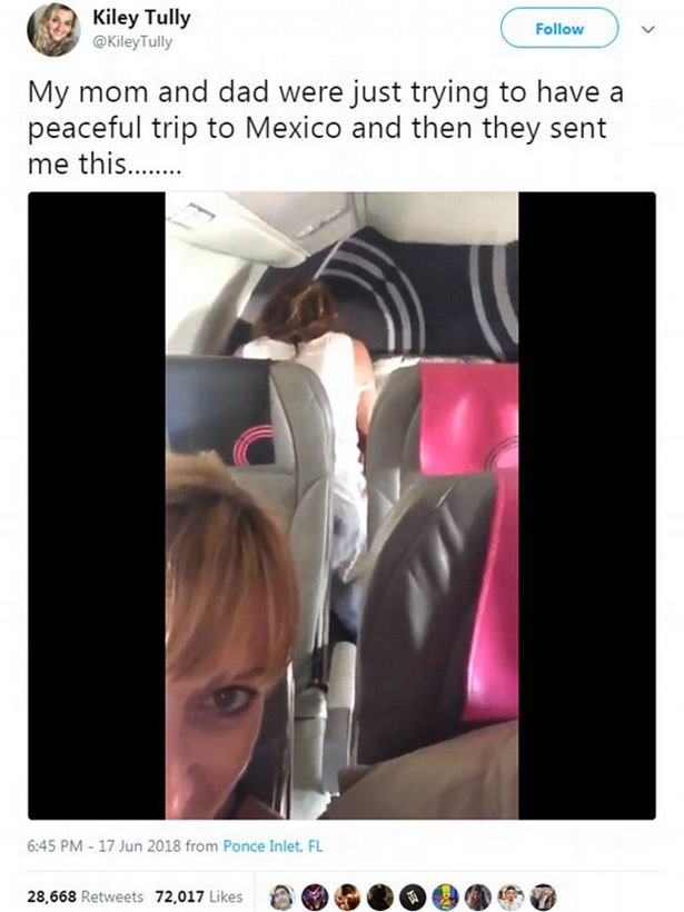 Pasangan yang terbang ke Meksiko tertangkap tanpa malu-malu bercinta di kursi mereka ketika seorang suami dan istri memfilmkan hiburan di dalam pesawat yang tak terduga tersebut.