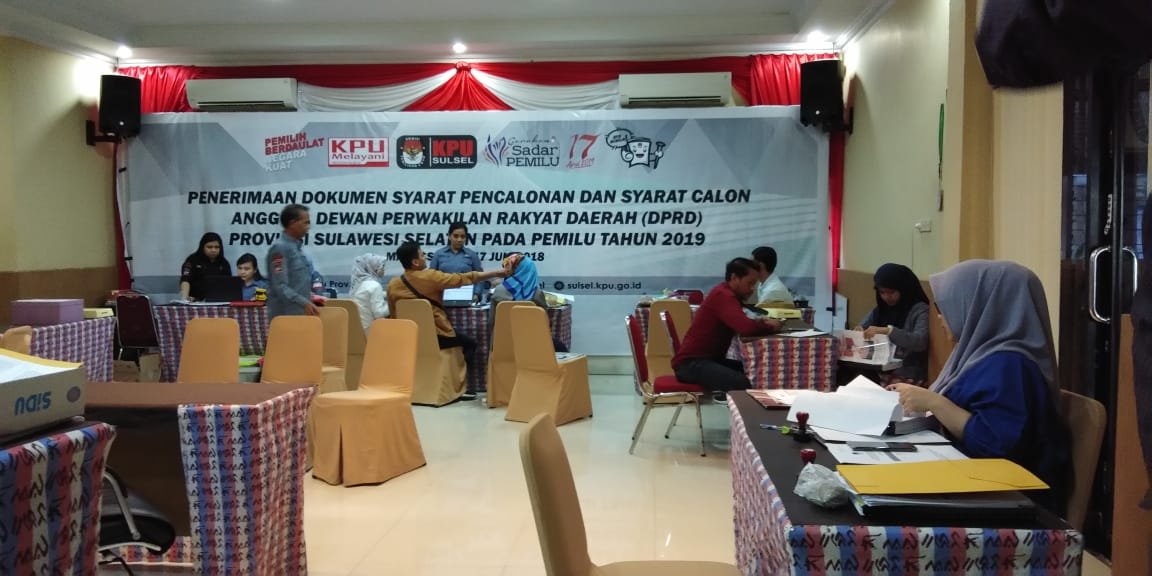 Total 16 partai politik yang mengajukan bakal calon anggota DPRD provinsi Sulawesi Selatan pada pemilihan legislatif 2019 mendatang , dengan total 1.235 dengan rincian perempuan 473 dan Laki-laki 762 orang.