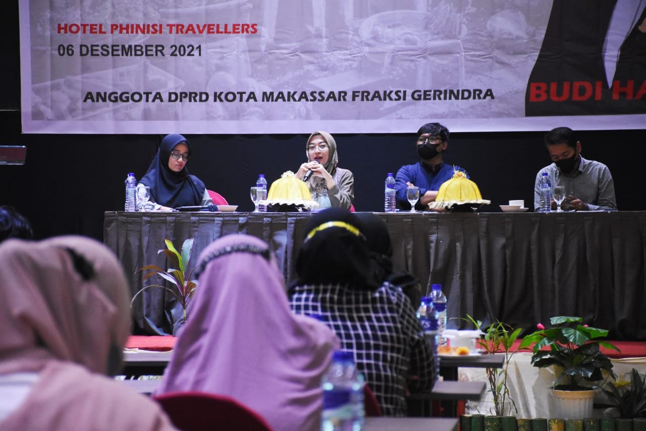 MAKASSAR, SULSELEKSPRES.COM – Anggota DPRD Kota Makassar, Budi Hastuti menggelar sosialisasi peraturan daerah (perda) nomor 15 tahun 2009 tentang Perlindungan, Pemberdayaan Pasar Tradisional dan Penataan Pasar Modern, di Hotel Traveler, Senin (6/12).