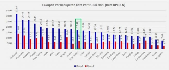 “Diukur berdasarkan target sasaran yang dihitung oleh KPCPen dan berlaku di semua daerah, bahkan untuk bulan juni 2021, Kota Parepare mencatat laju capaian target harian vakainasi tertinggi di Sulsel,” jelasnya.