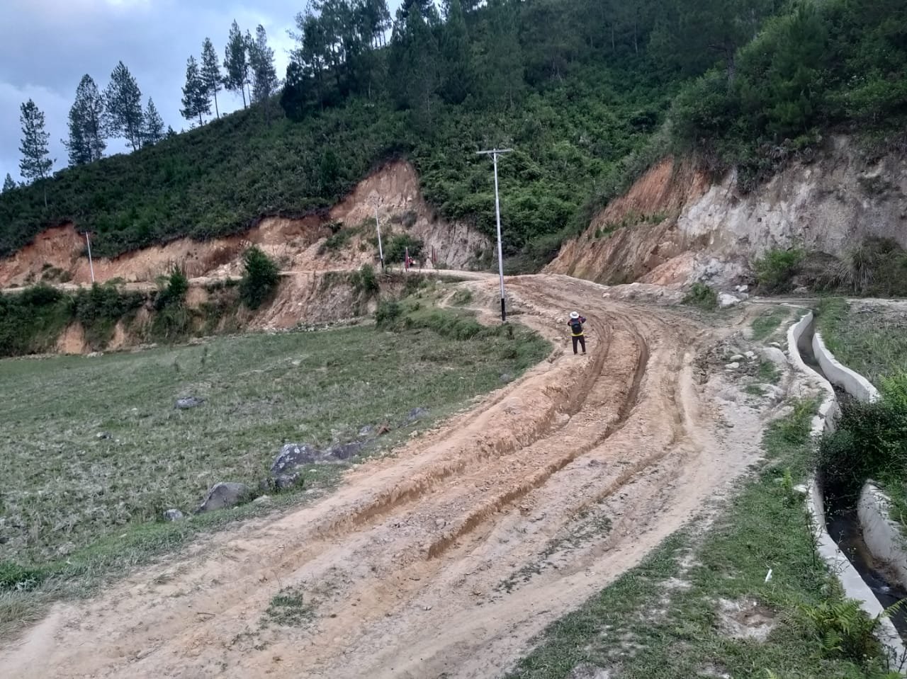 Untuk jalan tanah akan dilakukan pengerasan terlebih dahulu untuk memudahkan proses pengerjaan.