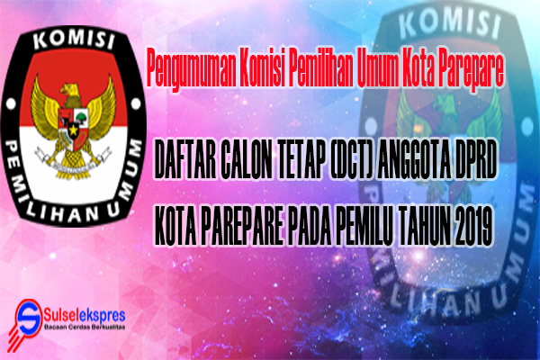 HomeHeadlinePengumuman KPU Parepare: DCT Anggota DPRD Parepare Pada Pemilu 2019 HeadlinePolitik Pengumuman KPU Parepare: DCT Anggota DPRD Parepare Pada Pemilu 2019 PenulisAdventorial 21 September 2018 Pengumuman KPU Parepare 0 - Advertisement - DAFTAR CALON TETAP (DCT) ANGGOTA DPRD KOTA PAREPARE PADA PEMILU TAHUN 2019 Post Views: 174 BACA JUGA : KPU Parepare Gelar Rakoor Pengelolaan Dokumen Pemilu Editor Sulselekspres TagsAdventorialDCT Anggota DPRD ParepareKPU PareparePengumuman KPU Parepare FacebookTwitterWhatsAppTelegram Previous articleZodiak Ini Paling Betah Hidup Jomblo, Kamu Termasuk?Next articleTingkatkan Pemahaman Pengelolaan Kerja Sama, Bagian Humas Gowa Gelar Rakor RELATED ARTICLES Politik Golkar Sulsel Doa Bersama untuk Korban Bencana Sumatera Aceh Luki Amima - 6 December 2025 Politik Apriyani Djamaluddin Nahkodai PDIP Parepare Periode 2025-2030 Luki Amima - 25 November 2025 Politik Menakar Peluang Rismawati Kadir Nyampa di Pileg DPR RI Sulsel 1 Tahun 2029 Sulselekspres - 22 November 2025 Headline Penggelapan PPN Senilai Rp1,8 Miliar Terungkap, Kanwil DJP Sulselbartra Serahkan Tersangka ke Kejari Makassar 10 November 2025 Rekam Jejak Imam Fauzan, Anak Muda Asal Sulsel Jabat Sekjen DPP PPP 2 October 2025 Unimerz Gelar PKKMB 2025/2026, 3.000 Mahasiswa Baru Siap Ukir Prestasi 4 September 2025 DPRD Sulsel Tegaskan Komitmen Perjuangkan Aspirasi Masyarakat Meski Gedungnya Ludes Terbakar 30 August 2025 Load more