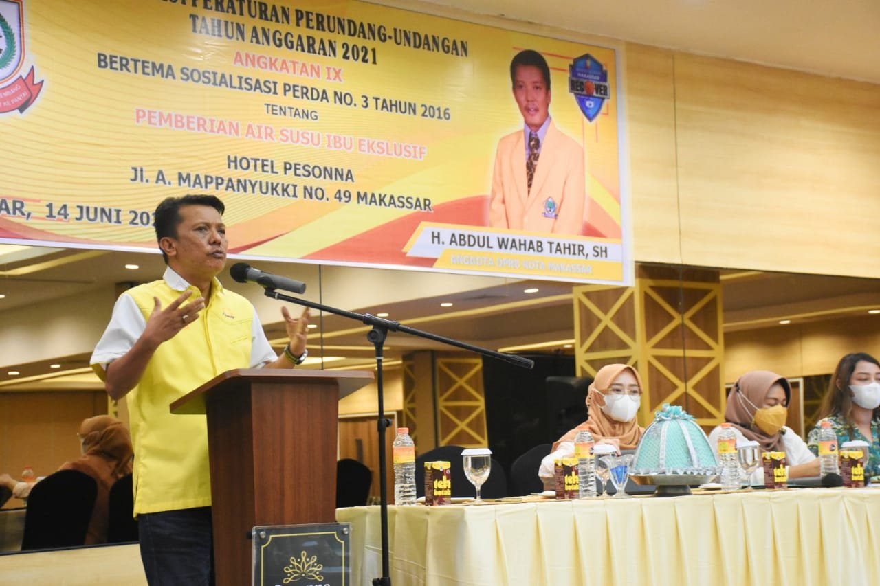 Hal itu disampaikan Anggota DPRD Kota Makassar Abd Wahab Tahir saat menggelar sosialisasi Peraturan Daerah (Perda) nomor 3 tahun 2016 tentang Pemberian Air Susu Ibu Eksklusif di Hotel Pessona, Jalan Andi Mappanyukki, Senin (14/6/2021).