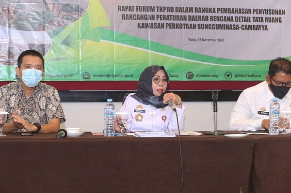 GOWA, SULSELEKSPRES.COM – Penjabat Sekretaris Daerah (Sekda) Kabupaten Gowa, Kamsina membuka Rapat Forum Tim Koordinasi Penataan Ruang Daerah (TKPRD) dalam rangka Pembahasan Penyusunan Rancangan Peraturan Daerah Rencana Detail Tata Ruang (RDTR) Kawasan Perkotaan Sungguminasa- Cambayya di Hotel Claro Makassar, Rabu (18/11/2020).