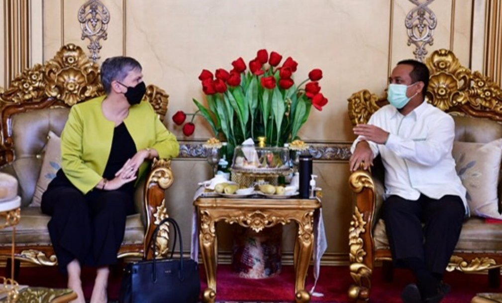 MAKASSAR, SULSELEKSPRES.COM – Duta Besar Australia untuk Indonesia, Penny Williams PSM, melakukan kunjungan kerja ke Sulawesi Selatan (Sulsel). Ia diterima langsung oleh Pelaksana Tugas (Plt) Gubernur Sulsel, Andi Sudirman Sulaiman, di Rumah Jabatan Gubernur Sulsel, Senin, (1/11/2021).