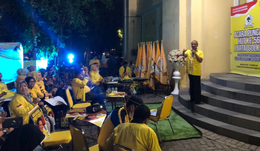 Meski demikian, sejumlah kader tetap antusias merayakan malam puncak Hari Ulang Tahun (HUT) ke-56 partai berlambang pohon beringin tersebut, berlangsung di halaman kantor DPD I Golkar Sulsel, Jalan Bontolempangan, Sabtu (24/10/2020) malam.