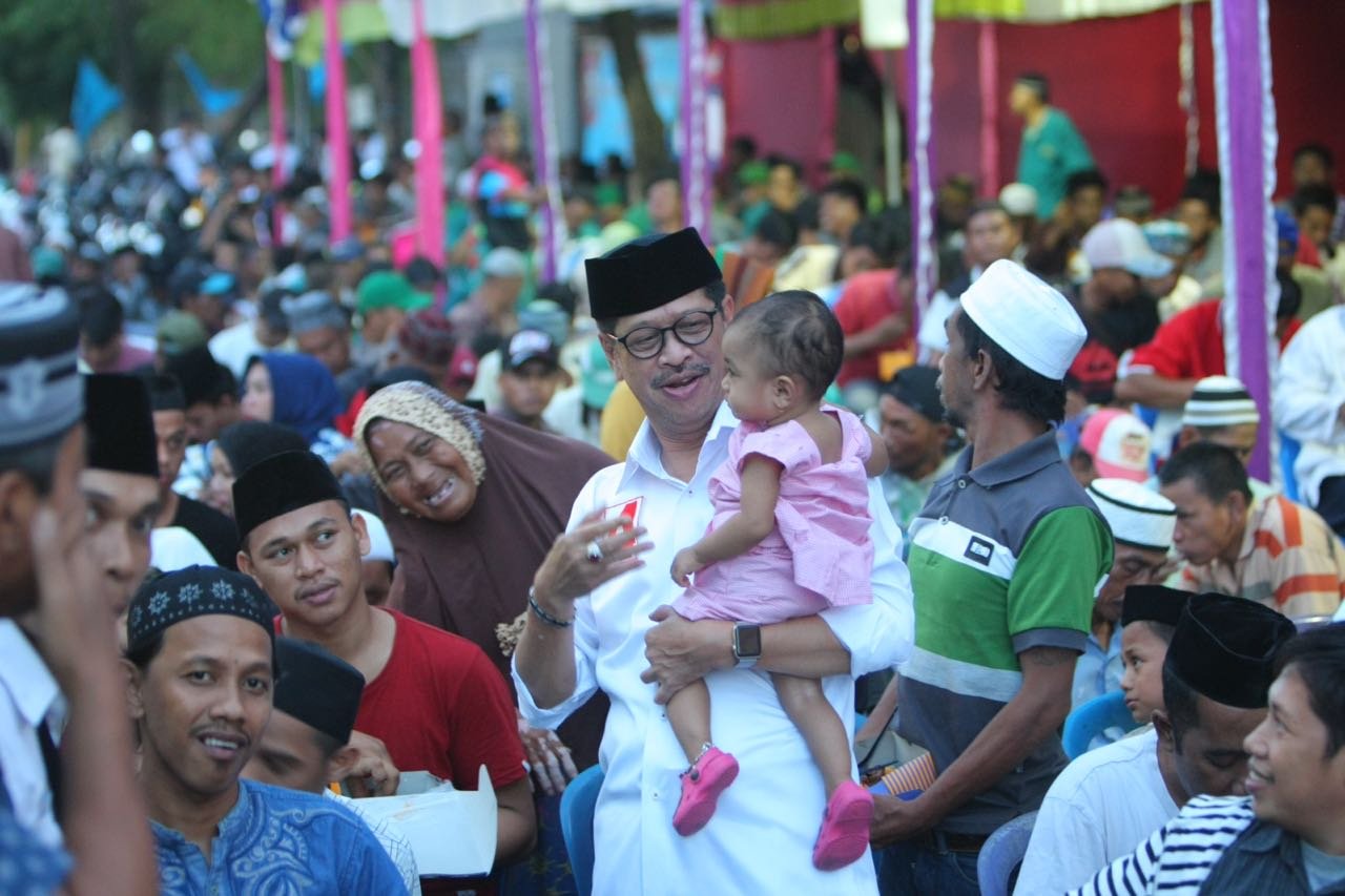 Dukungan dan keberpihakan ke IYL-Cakka tercermin saat ratusan buruh angkutan muat di Pelabuhan Makassar, antusias hadir di buka puasa bersama dengan Ichsan Yasin Limpo di depan akses masuk ke pelabuhan di Jalan Nusantara, Senin (4/6/2018) sore.