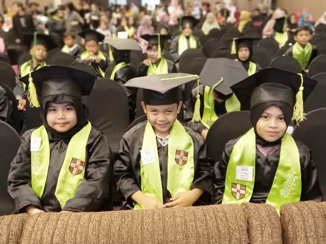 “Hari ini kita melaksanakan The Cambridge Certification award ceremony atau Celebration of Succes, yaitu wisuda internasional dari Cambridge University. Ini acara tahunan untuk menyelesaikan satu level belajar bahasa Inggris di Briton,” buka Sirajuddin.
