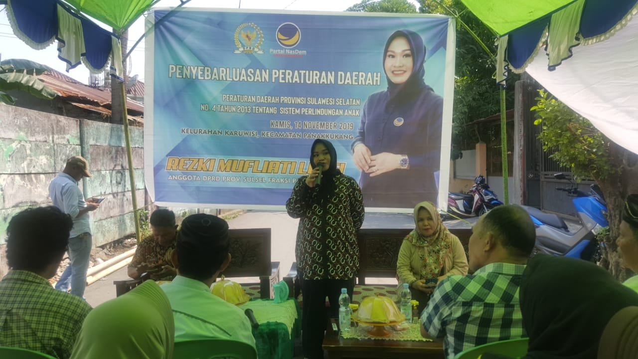 Hal ini diungkapkan oleh Anggota DPRD Sulsel, Rezki Mufliati Lutfi saat menyebarluaskan Peraturan Daerah (Perda) Pemprov Sulawesi Selatan No.4 Tahun 2013 terkait Sistem Perlindungan Anak di Kel. Karuwisi, Kec. Panakkukang, Kamis (14/11/2019).