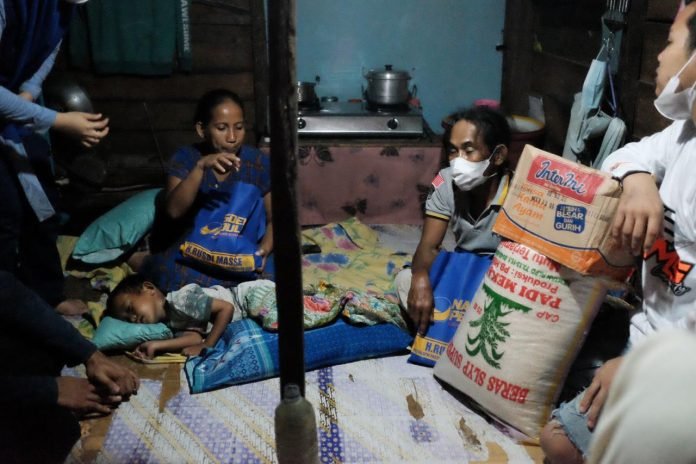 Kader NasDem Milenial RMS datang pas saat hujan deras disertai angin kencang. Menyaksikan air hujan menetes masuk dari seng yang sudah bocor. Keempat anaknya yang sedang tidur terlihat sangat nyenyak. Padahal air hujan menetes di sekitarnya. Mungkin karena sudah menganggap hal yang biasa.