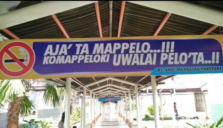 Hal tersebut, dibuktikan dengan spanduk yang terpajang pada salah satu area di rumah sakit, dan berisi larangan untuk merokok dengan menggunakan Bahasa Lontara Bugis, agar dapat diterima oleh berbagai lapisan masyarakat, khususnya Parepare dan daerah-daerah yang ada di sekitarnya.