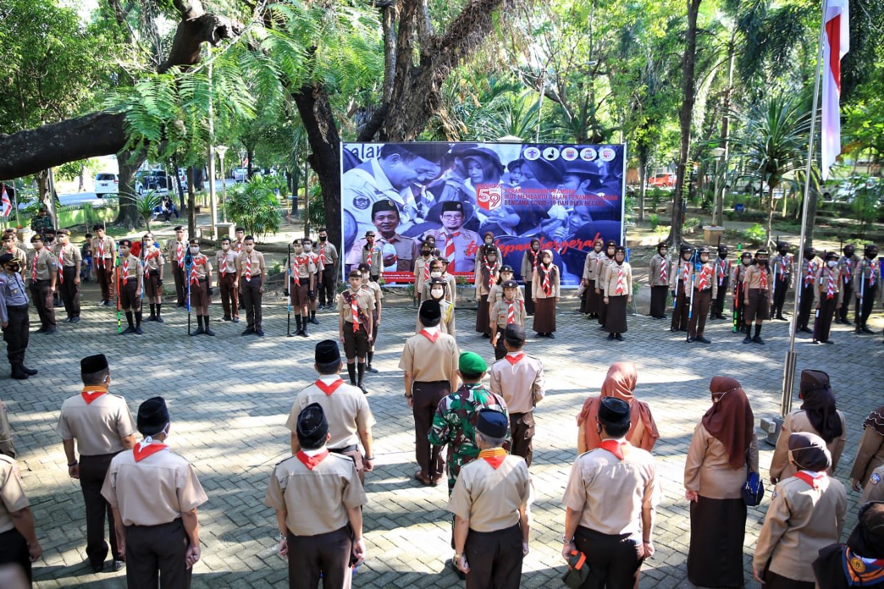 Dalam sambutannya, Rudy mengatakan, tema Pramuka tahun ini adalah Peran Gerakan Pramuka Ikut Membantu Dalam Penanggulangan Bencana Covid-19 dan Bela Negara.