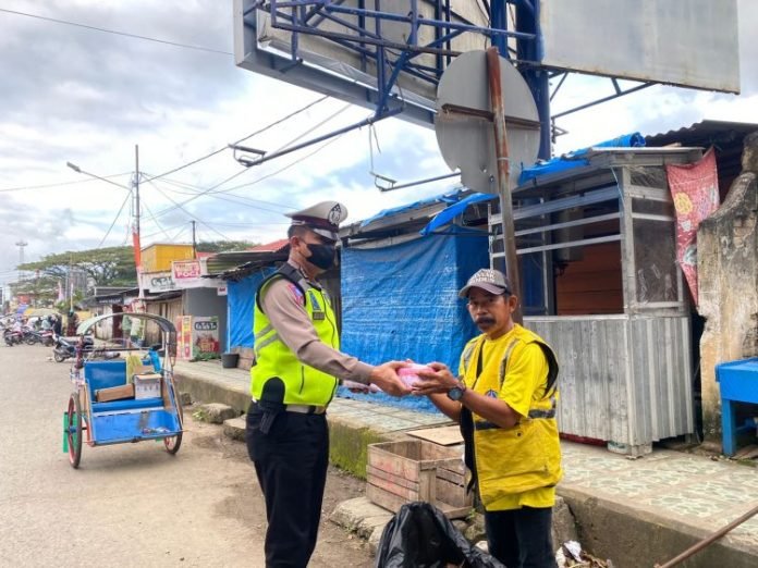 BONE, SULSELEKSPRES.COM – Berbagai cara dilakukan polisi di Kabupaten Bone untuk mendekatkan diri ke masyarakat. Sejumlah personel Satlantas Polres Bone berbagi kebahagiaan membagikan makanan kepada pengguna jalan, kaum duafa, tukang becak dan tukang ojek, Jumat (2/9/2022) pagi.