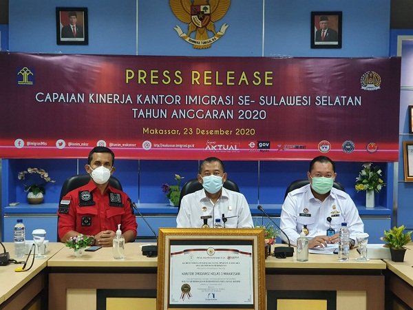Hal itu disampaikan oleh Kepala Divisi Keimigrasian Kanwil Kemenkumham Sulsel, Dodi Karnida, yang didampingi Kakanim Makassar Agus Winarto dan Kakanim Parepare Arief Eka Riyanto dalam Press Release Capaian Kinerja 2020 di Kanim Makassar, Rabu (23/12/2020).