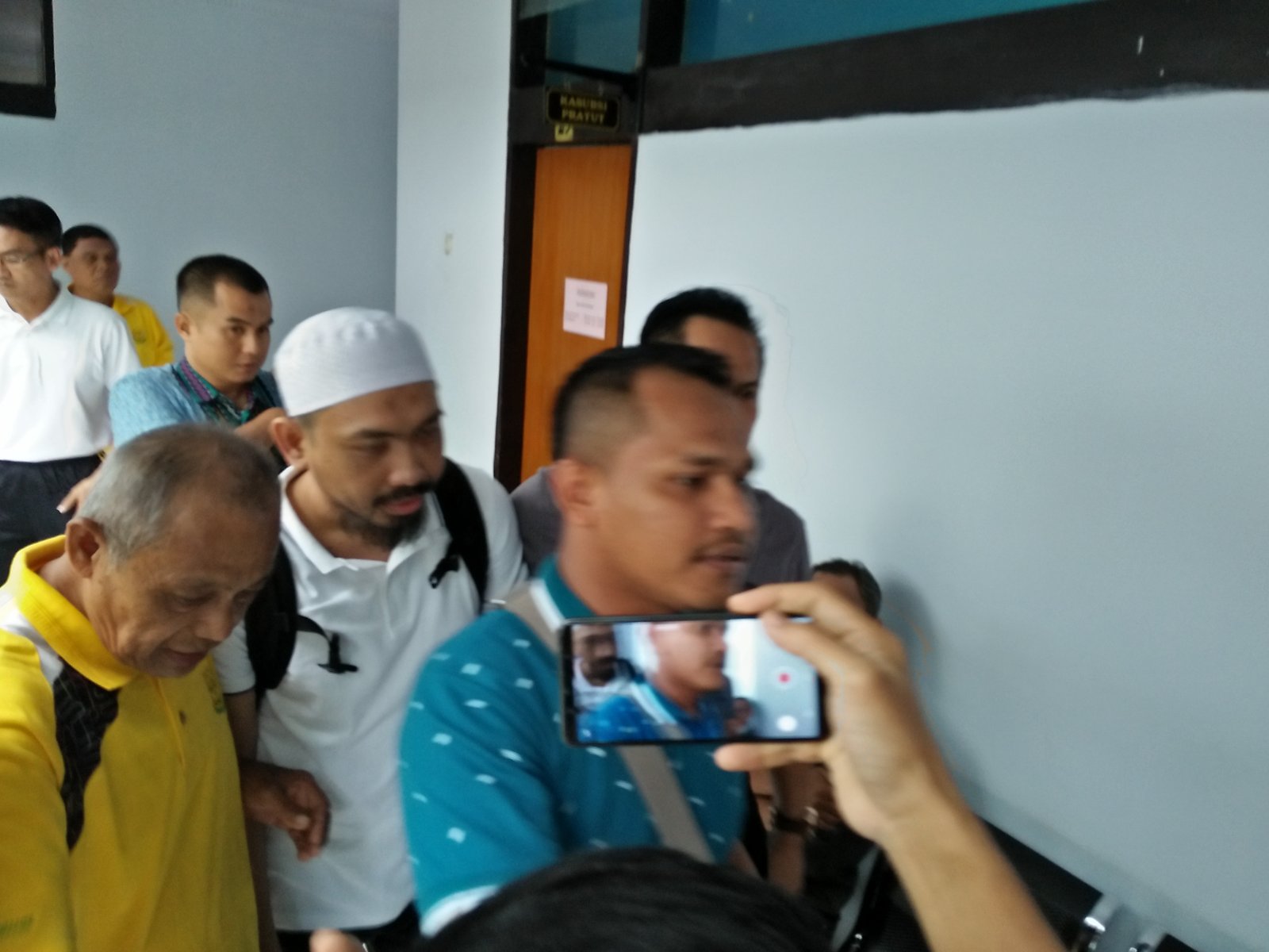 Saat diserahkan ke Kejaksaan Negeri Makassar, Hamzah Mamba yang menggunakan kemeja dan kopia putih itu langsung digelandang ke ruang Diversi sekitar pukul 13.10.