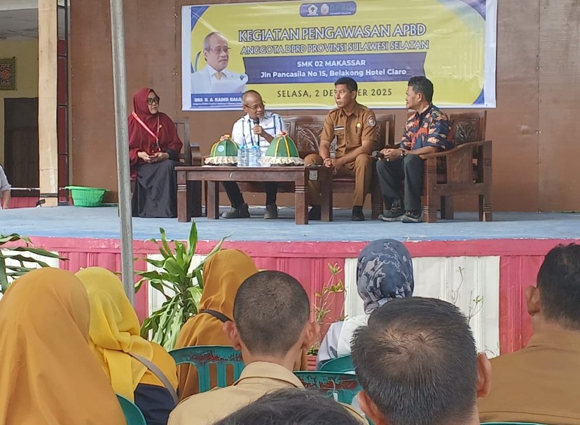 Makassar – Anggota DPRD Sulsel, Kadir Halid melakukan pengawasan APBD di SMK 02 Makassar pada Selasa (02/12/2025). Dalam pelaksanaannya, ia menyerap aspirasi dari pihak sekolah dan meninjau ruang kelas yang sementara dibangun.