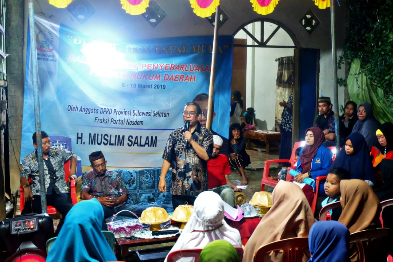 MAROS, SULSELEKSPRES.COM – Legislator DPRD Sulsel, H. Muslim Salam kembali melakukan sosialisasi dengan masyarat dalam rangka penyebar luasan Produk Hukum Pemerintah Provinsi Sulawesi Selatan (Sulsel) terkait perlindungan lahan pertanian di Dusun Kaemba, Desa Pabentengan, Kecamatan Marusu, Kabupaten Maros, Minggu malam (10/3/2019).