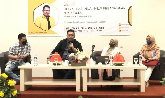 MAKASSAR, SULSELEKSPRES.COM – Anggota DPRD Sulsel, Andi Izman Maulana Padjalangi menggelar Sosialisasi Nilai-nilai kebangsaan dengan tema “Hari Guru” di Hotel Grand Imawan, Jalan Pengayoman, Panakukkang, Sabtu (27/11/2021).