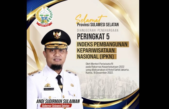 Gubernur Sulsel, Andi Sudirman Sulaiman mengatakan, “Alhamdulillah, Sulsel termasuk 5 besar peringkat Indeks Pembangunan Kepariwisataan Nasional (IPKN) tahun 2022, dengan nilai 3,99,” katanya, Jum’at (16/12/2022).