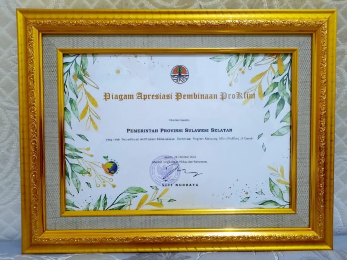 SULSELEKSPRES.COM – Penghargaan lingkungwn kembali diraih Provinsi Sulsel dibawah kepemimpinan Andi Sudirman Sulaiman sebagai Gubernur Sulsel. Penghargaan lingkungan tersebut adalah penghargaan Proklim (Program Kampung Iklim).