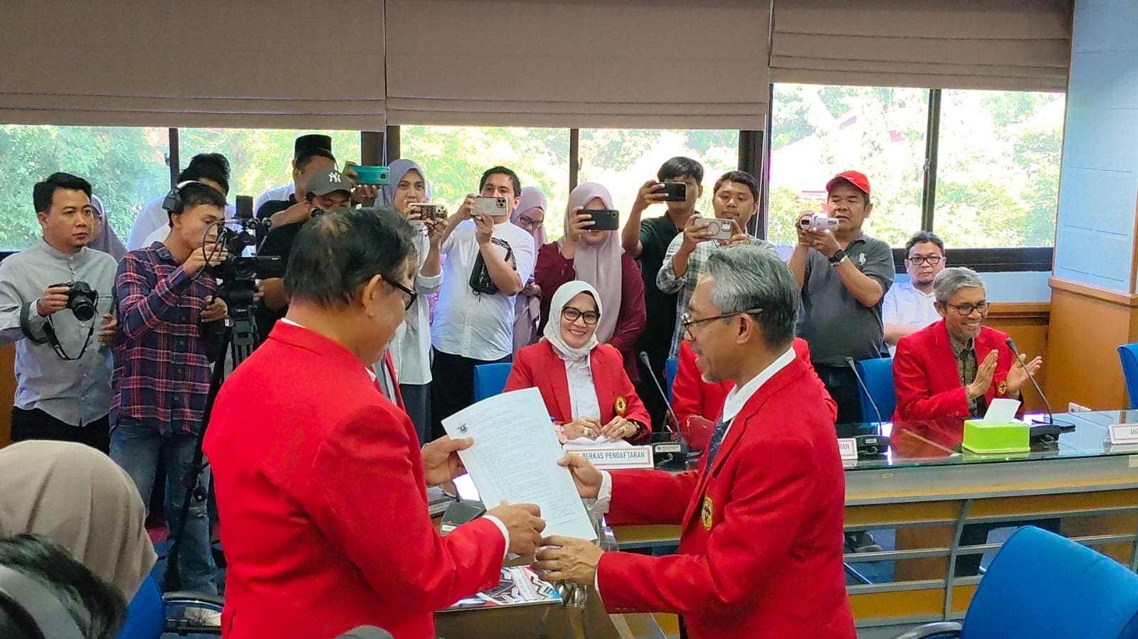 Berkas pendaftaran Budu diterima langsung oleh Ketua Panitia Pilrek Unhas Prof. Hasanuddin Tahir dan panitia lainnya.