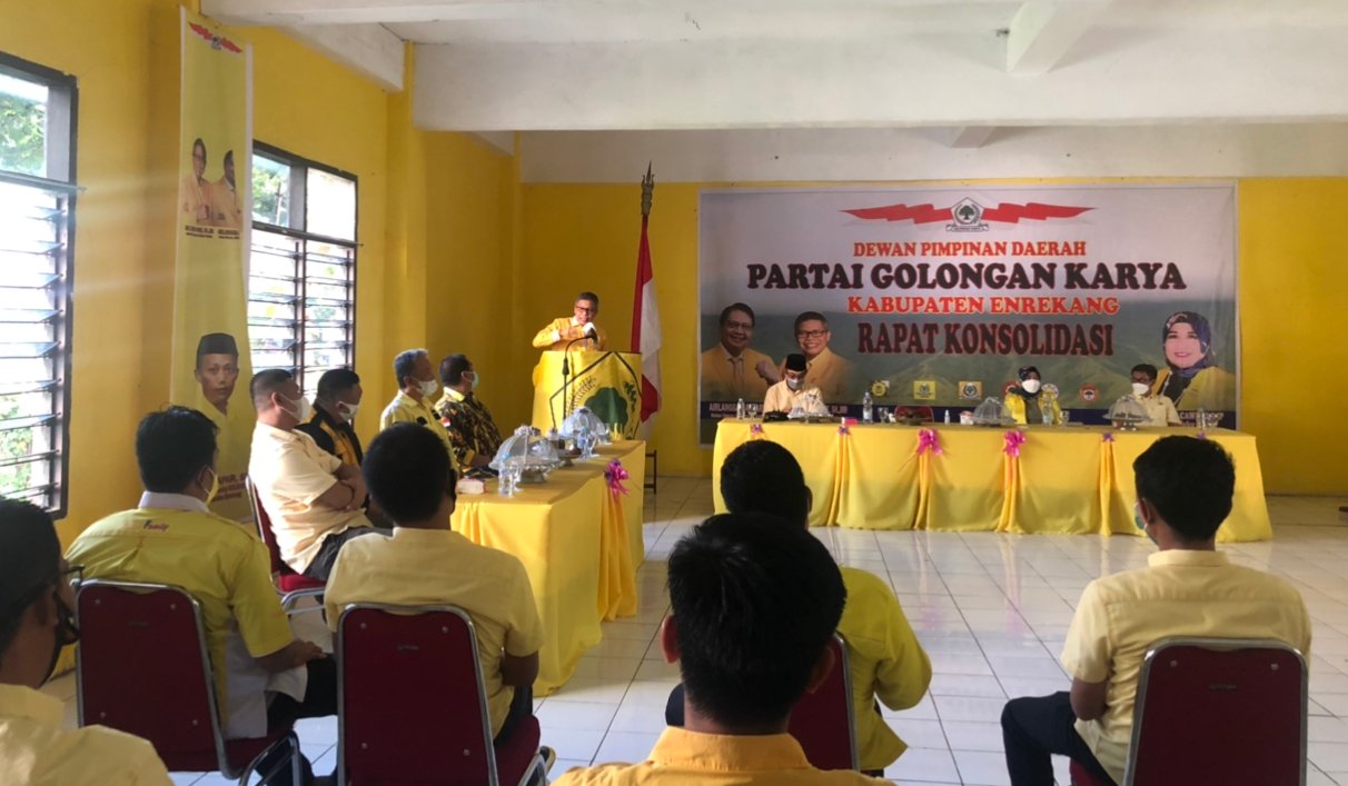 Hal itu dilakukan saat menghadiri Rapat Konsolidasi Partai Golkar Enrekang bersama sejumlah jajaran pimpinan DPD I Golkar Sulsel, di Kantor Sekretariat Golkar Enrekang, Jl Jendral Sudirman, Jumat, (26/2/2021).