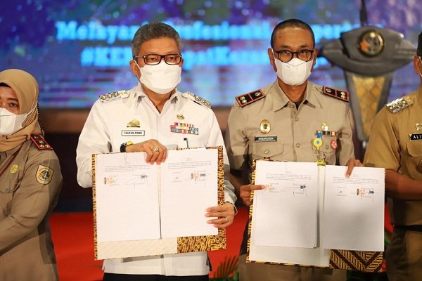 Penandatangan ini dihadiri langsung Menteri Agraria dan Tata Ruang Sofyan Djalil. Kegiatan ini dirangkaikan penyerahan sertifikat tanah untuk rakyat.