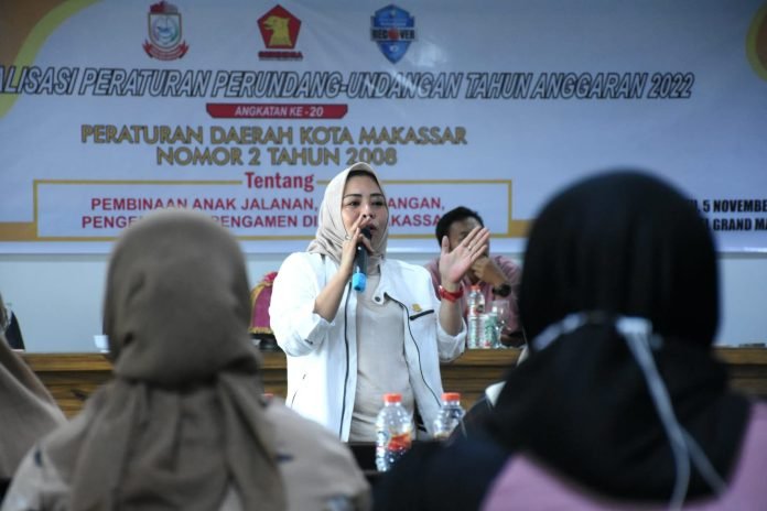 MAKASSAR, SULSELEKSPRES.COM – Anggota DPRD Kota Makassar, Hj Nunung Dasniar menggelar sosialisasi Perda Nomor 2 tahun 2008, tentang Pembinaan Anak Jalanan, Gelandangan, Pengemis dan Pengamen di Kota Makassar, di Hotel Grand Maleo, Jalan Pelita Raya,Sabtu (5/11/2022).