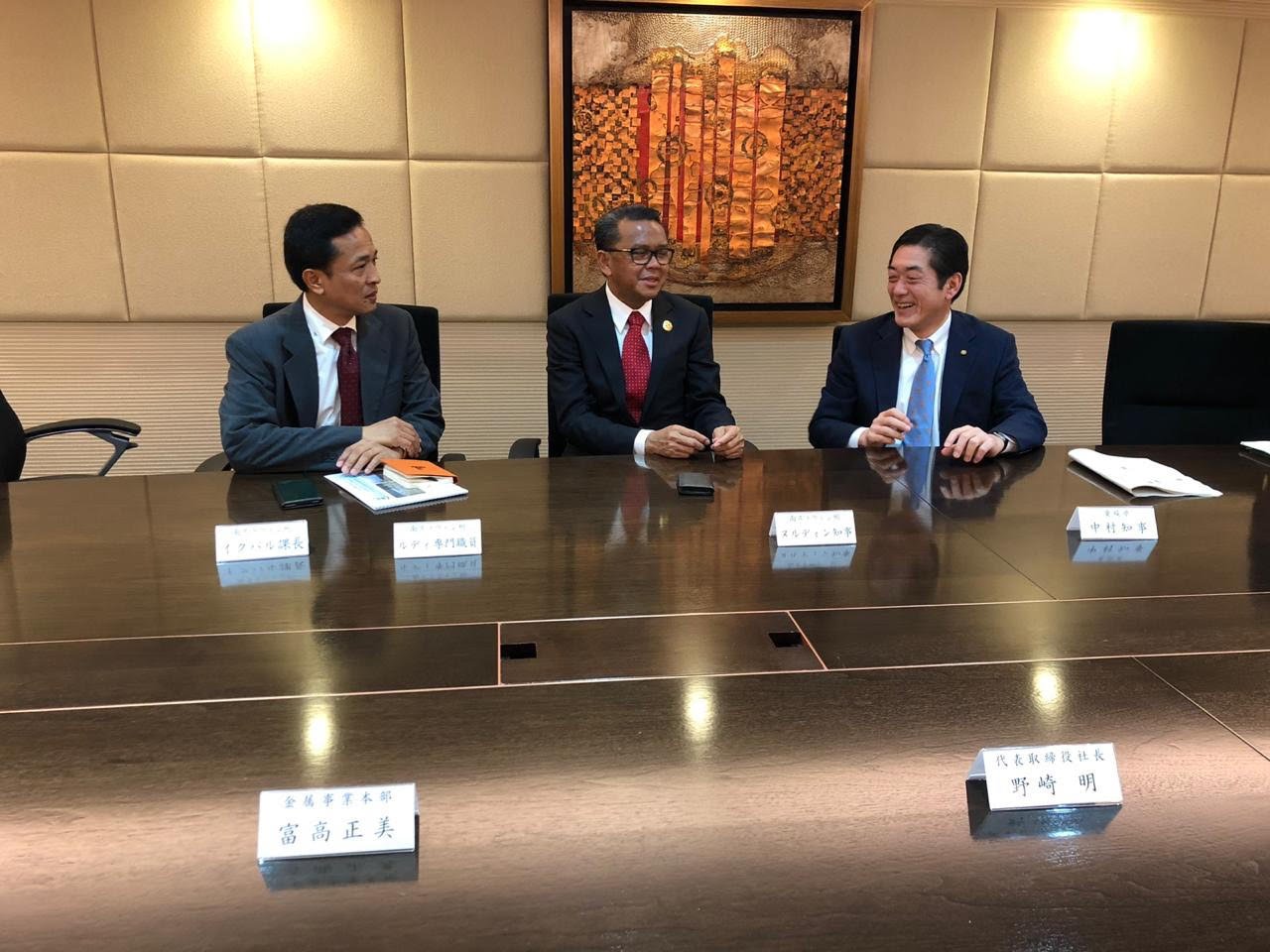 Pada kesempatannya, Nurdin Abdullah bersama dengan Akira Nozaki membahas terkait pemanfatan potensi tambang dan pengelolaan lingkungan.
