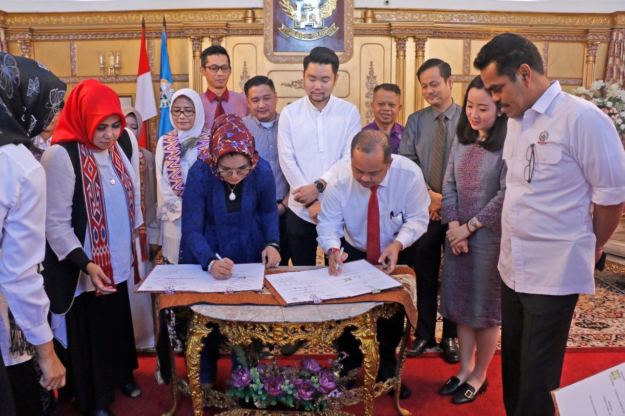 MAKASSAR, SULSELEKSPRES.COM– Dewan Kerajinan Nasional Daerah (Dekranasda) Sulawesi Selatan (Sulsel) menjalin kerja sama dengan Phinisi Hospitality Hotel (PHI), di Rumah Jabatan Gubernur Provinsi Sulawesi Selatan, Rabu (15/5/2019).