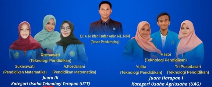 Pertama, Juara III Kategori Usaha Terapan (UTT) oleh Risnawati Prodi Teknologi Pendidikan, Sukmawati dan A. Rosdaliani masing-masing prodi Matematika.