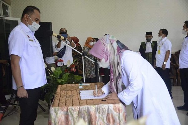 “Jika program PTSL di Kabupaten Bone sukses, dapat membawa kesejahteraan masyarakat, sebab sertifikasi memberikan kekuatan hukum yang kuat atas hak milik tanah,” ungkapnya saat memberikan sambutan dalam acara Pelantikan dan Pengambilan Sumpah Panitia Ajudikasi, Satuan Tugas Yuridis dan Satuan Tugas Fisik PTSL Tahun 2021 yang dilaksanakan di kantor Badan Pertanahan Nasional (BPN) Bone Kompleks Stadion Lapatau, Rabu (06/01/2021).