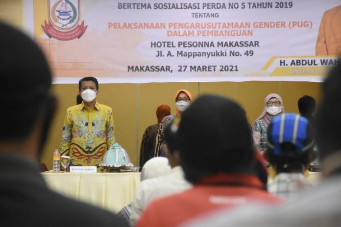 Hal itu disampaikan Anggota DPRD Kota Makassar, Abdul Wahab Tahir saat menggelar Sosialisasi Peraturan Daerah (Perda) nomor 5 tahun 2019 tentang Pengarusutamaan Gender dalam pembangunan di Hotel Pessona, Sabtu (27/3).