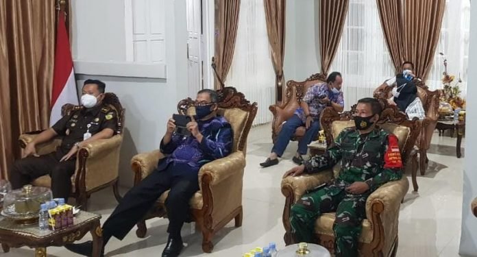 PAREPARE, SULSELEKSPRES.COM – Wakil Wali Kota Parepare H. Pangerang Rahim bersama Forum Pimpinan Daerah (Forkopimda) Kota Parepare mengikuti video conference rapat koordinasi terkait penegakan disiplin protokol kesehatan dan penanganan covid-19, yang digelar di Rujab Wawali, Senin, (01/02/2021).