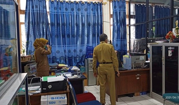 “Biar di ruangan tetapki harus pakai masker,” pesan Taufan menegur ASN yang terlihat lalai tak kenakan masker, Selasa (29/06/2021).