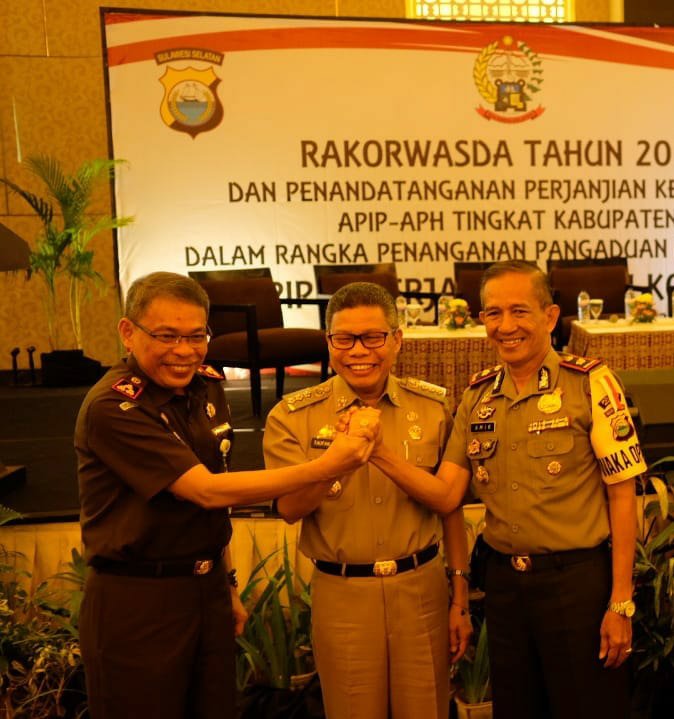 Hal tersebut, merupakan kesepakatan bersama dalam pengawasan penyelenggaraan pemerintahan daerah (P3D), yang dibuktikan dengan penandatanganan kerjasama antara aparat penegak hukum, dalam hal ini Kapolres dan Kajari, serta Kepala Daerah se-Sulawesi Selatan.