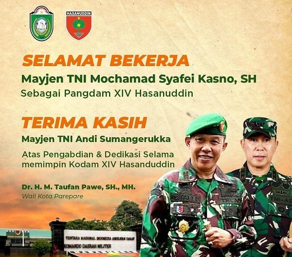 Pergantian pimpinan TNI Kodam XIV/Hasanuddin itu mendapat respon Pemerintah Daerah Kota Parepare.