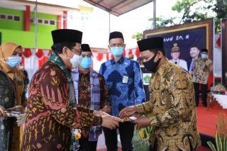 Penyerahan bantuan secara simbolis diberikan Wamenag kepada Ponpes DDI As Salman Allakuang Kab. Sidrap, Ponpes Ash Shalihin Kab. Gowa, MDT Geraldin Mallengkeri Kota Makassar, MDT Bawapitu Kab. Pangkep, TPQ Muwafaqatul Qurra Kota Makassar dan TPQ Nurul Hikmah Kabupaten Gowa.
