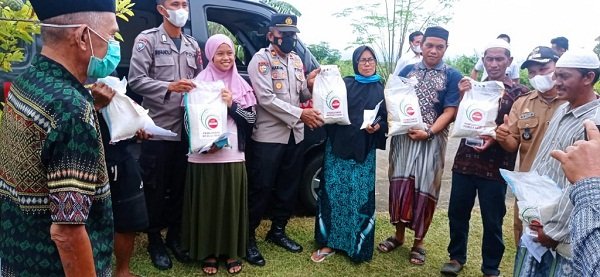 Bantuan yang di berikan berupa beras 50 karung dengan ukuran 5kg per warga.