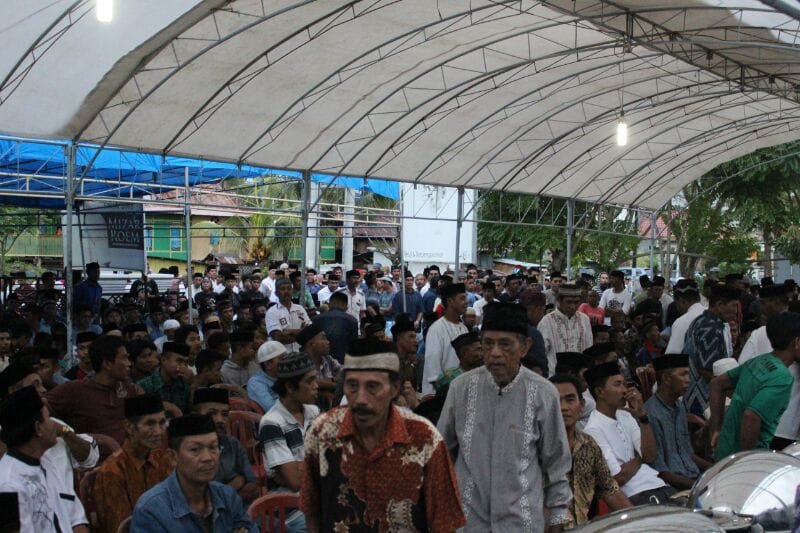 Selain itu, masyarakat juga khusyuk melaksanakan sholat Magrib dengan imam Ust Ubaidillah.